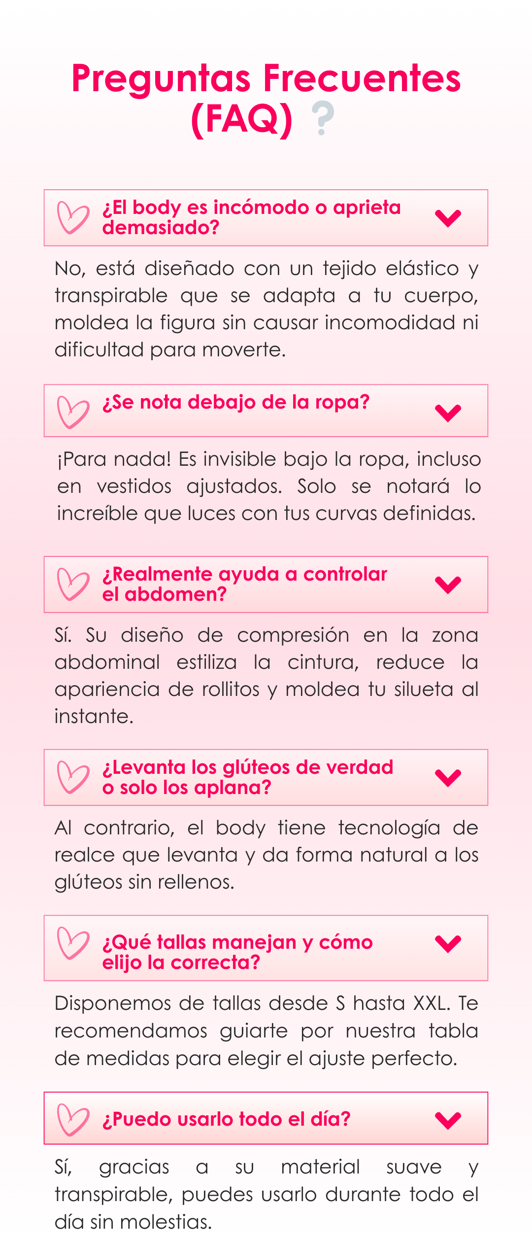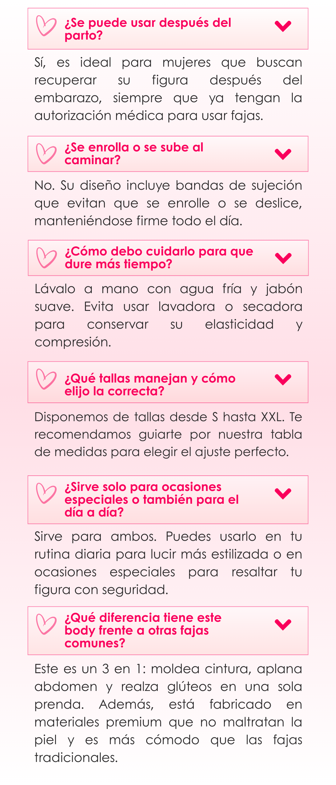 Cintura definida, abdomen plano, busto y glúteos realzados, figura estilizada y confianza renovada.