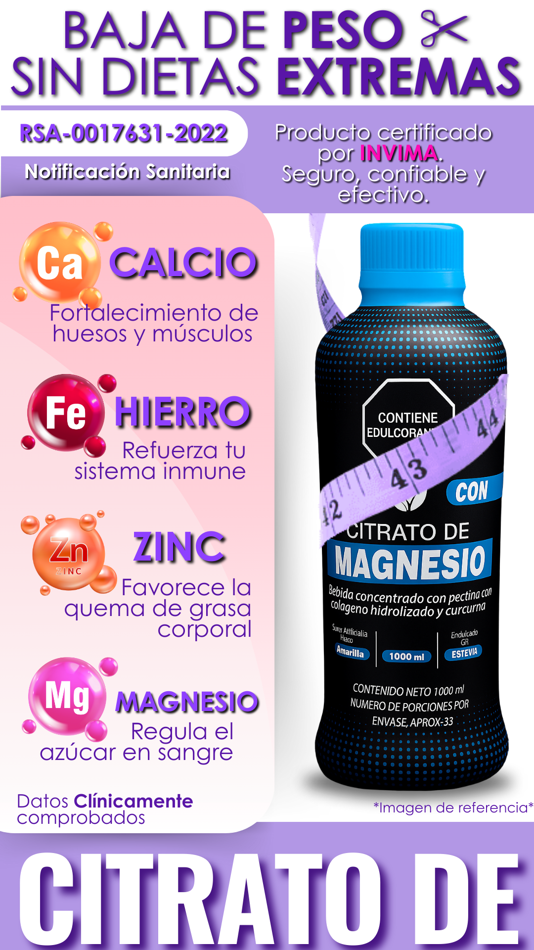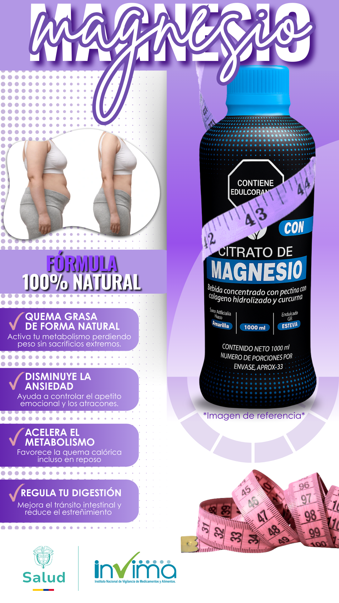 🔥 Pierde peso y reduce la ansiedad con Citrato de Magnesio 💧